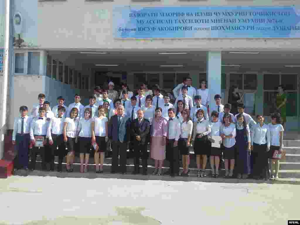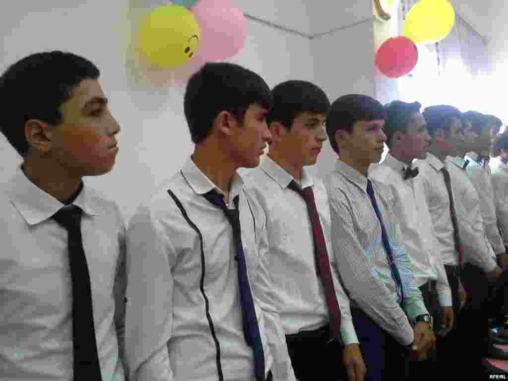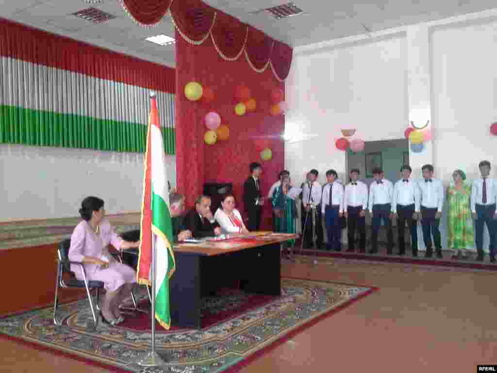Нынешний звонок зрелости отличался от предыдущих лет тем, что на нем демонстрировались кадры из церемонии присяги главы государства Эмомали Рахмона на церемонии инаугурации в конце 2013 года.