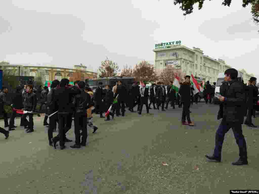 Тысячи молодых людей приняли участие в Душанбе в шествии Дня национального флага Таджикистана.