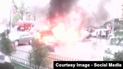 Водитель автомашины Баходур Шарифов в беседе Радио Озоди сказал, что не может объяснить почему загорелась его машина.