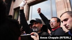 Полиция задержала оппозиционного депутата и лидера уличных протестов в Армении Никола Пашиняна во время шествия, сообщает корреспондент Настоящего Времени с места событий Артур Хачатрян. Помимо Пашиняна задержаны Арарат Мирзоян и Сасун Микаелян.