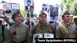 В Бишкеке "Бессмертный полк" проходит уже в третий раз и в этом году также собрал рекордное количество участников. По оценкам, около 30 тысяч людей вышли на улицы с портретами предков, которые участвовали во второй мировой войне.