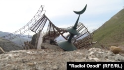 Журналисты Радио Озоди 11 марта побывали в мечети в нурекском селе Дахана. Позади мечети на земле лежали обломки разрушенных минаретов.