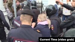 К задержанным применяют силу. По данным "ОВД-инфо", избиты шесть человек. Не особенно удачно закончилась прогулка по центру Москвы для члена партии "Единая Россия" Натальи Тельминовой.