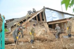 Солдаты ликвидируют последствия наводнения после прорыва дамбы Сардобинского водохранилища