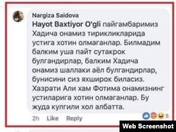 35-летняя Наргиза Рахимова подверглась критике в Сети после публикации на странице Радио Озодлик в фейсбуке комментария на тему многоженства у мусульман.